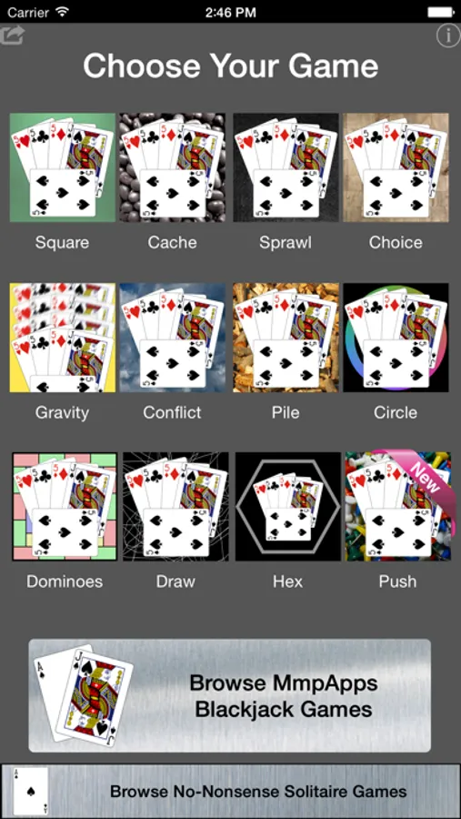 CRIBBAGE SQUARE COLLECTION is an 12-in-1 collection of games related by the Cribbage Square solitaire theme.