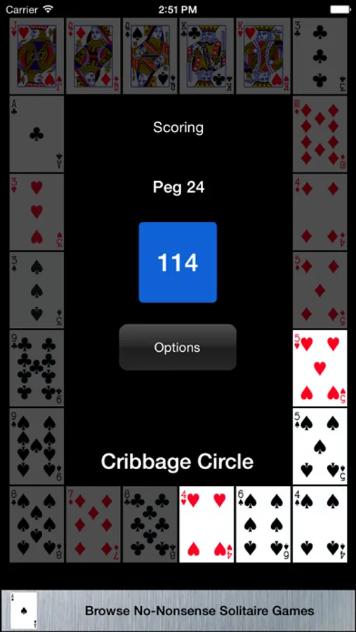 CRIBBAGE CIRCLE: A truly unique bonus game where you place cards in a large circle. All connected 5-card hands will score.