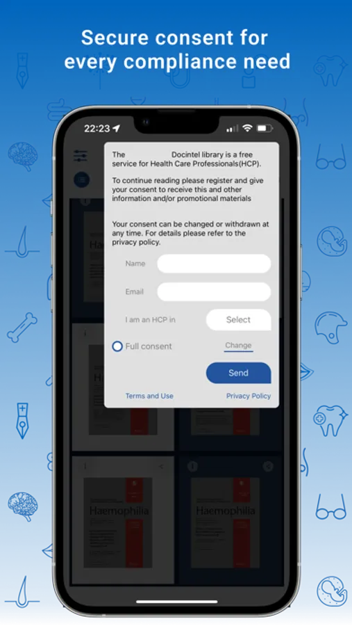The inforMedGO app allows sales teams to show marketing materials during face to face meetings. From within the app access to the materials can be e-mailed by the sales person to the viewer.