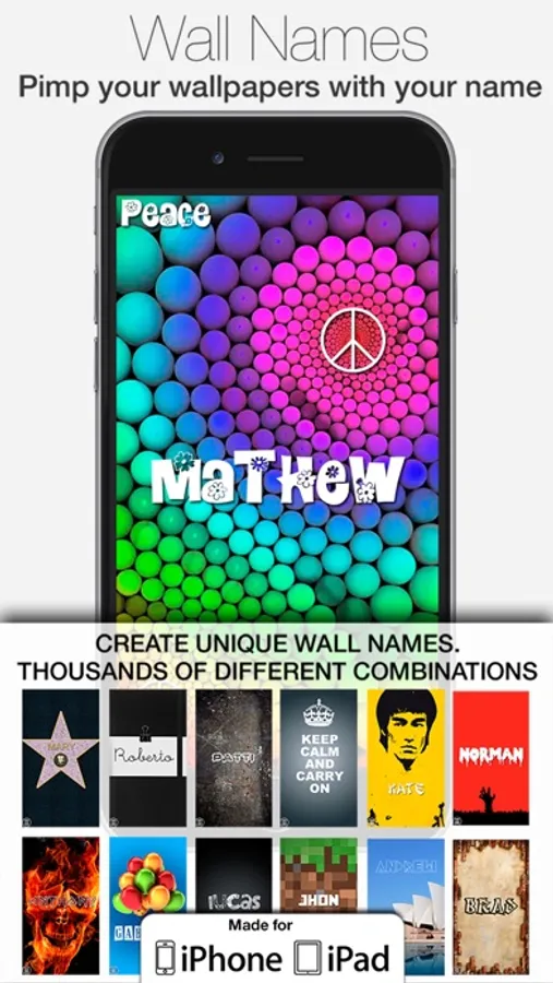 Customize the Wall Names of your iPhone, iPod or iPad with your desired name. We give a few that are great, but you can create them with all your photos.