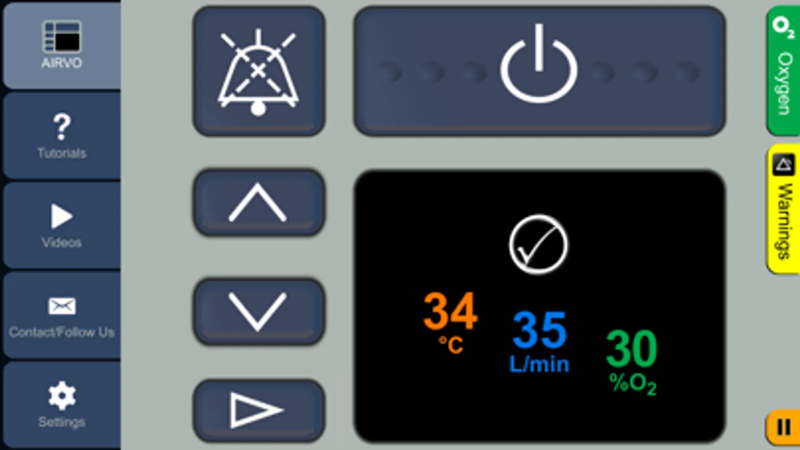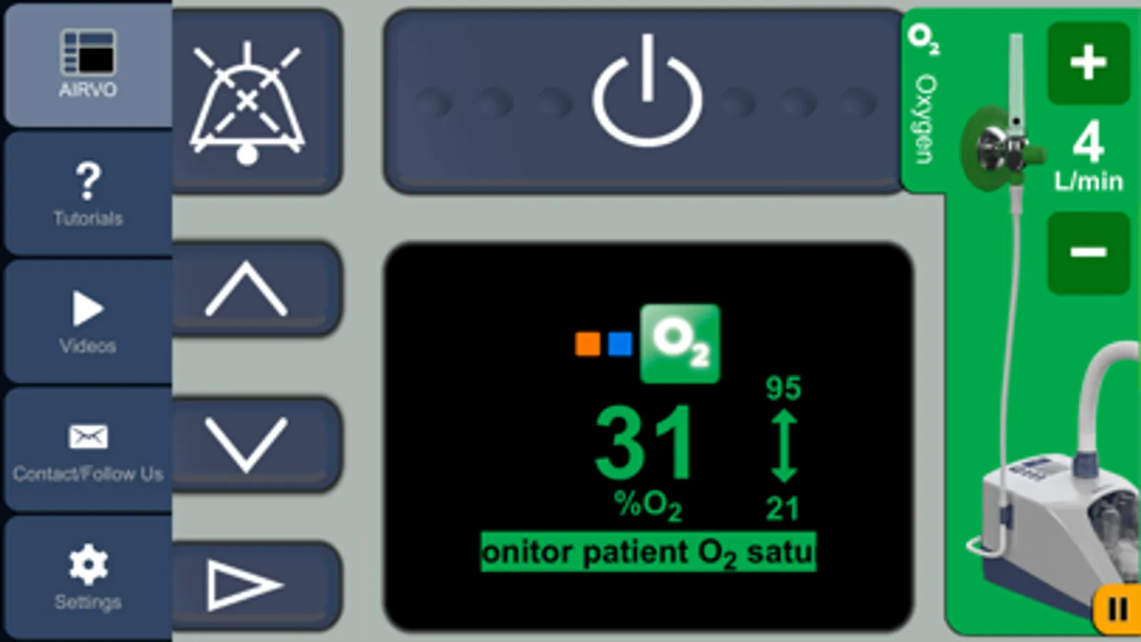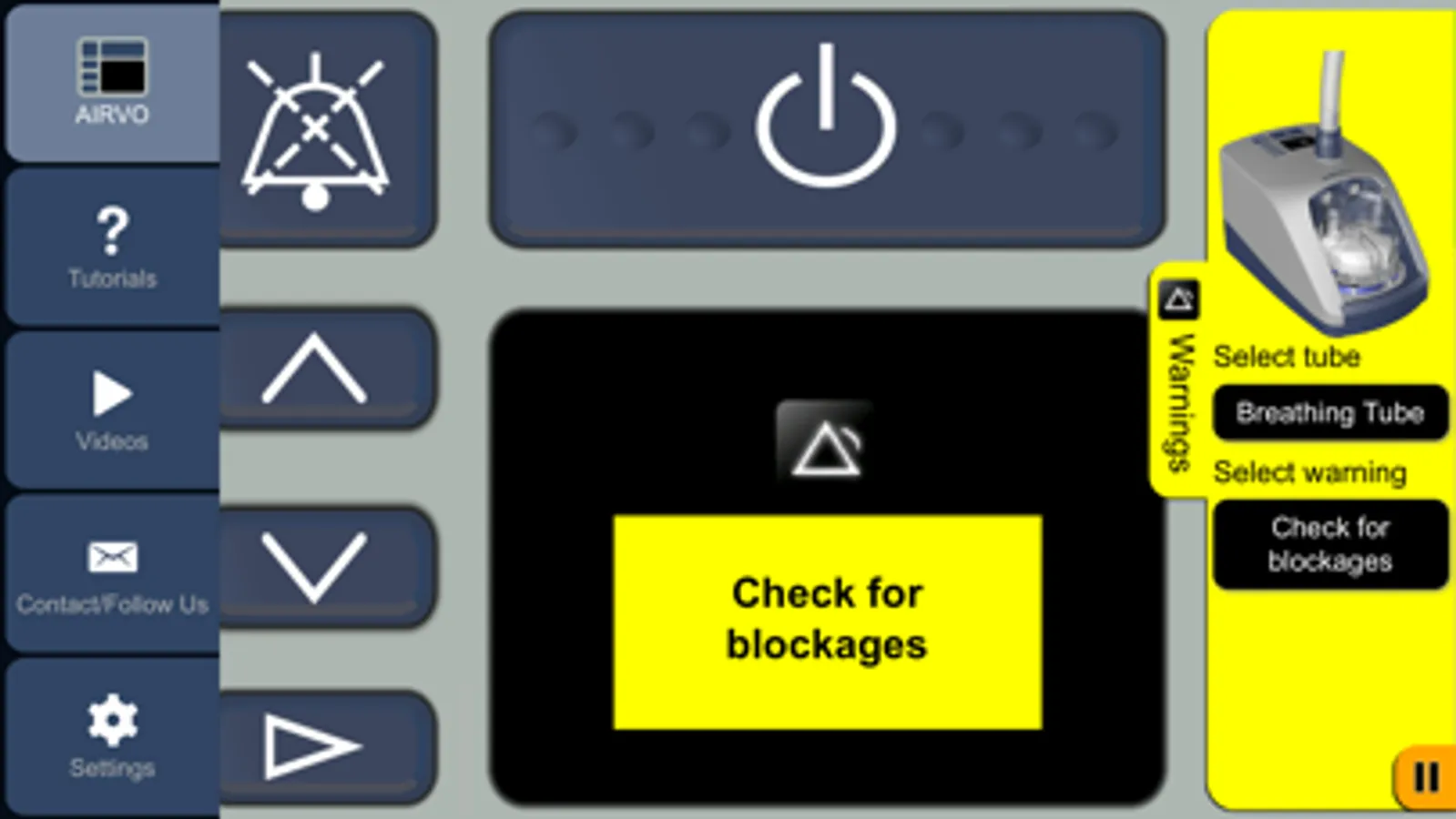 You can change settings, change oxygen levels and simulate warnings. There are tutorials to help out with the basics, as well as short videos clips that step you through operation of the AIRVO 2.
