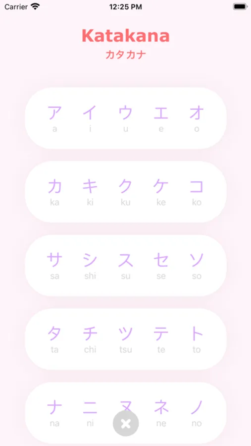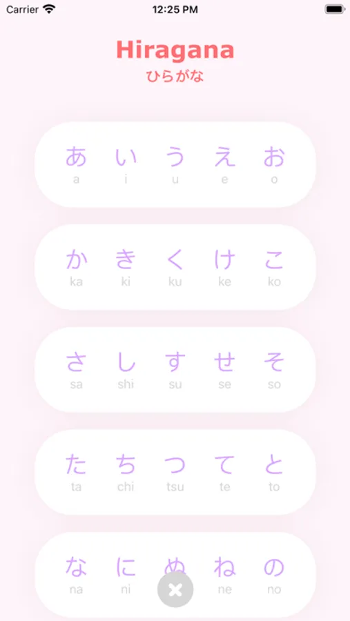 - Text-to-Sound: View the Hiragana and Katakana and choose its correct pronunciation.