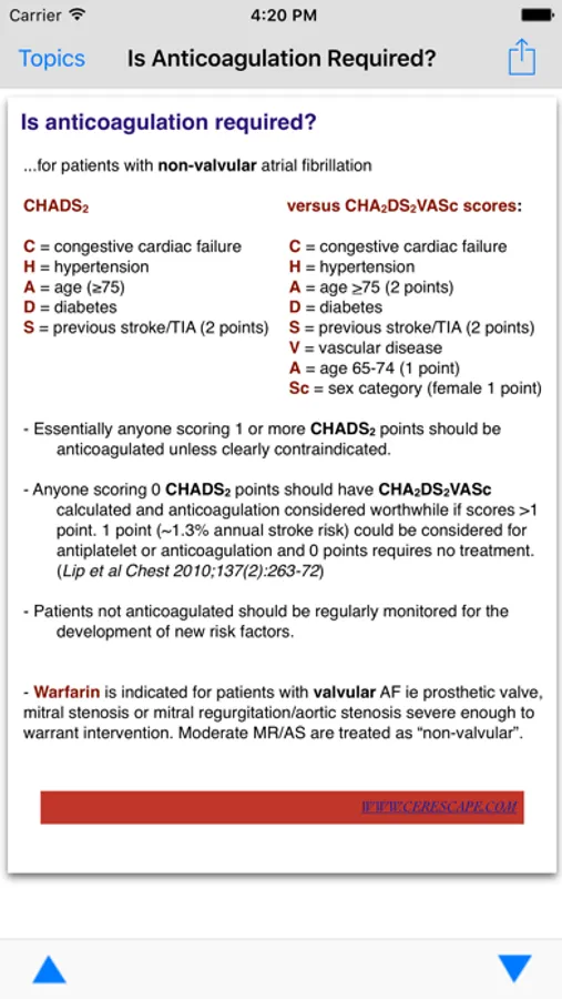 This application is for medical practitioners who need to quickly review which anticoagulant (including the direct oral anticoagulants (DOACs)) to use to prevent stroke in patients with non-valvular atrial fibrillation (NVAF).