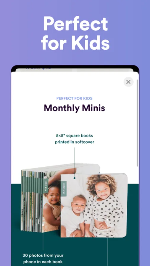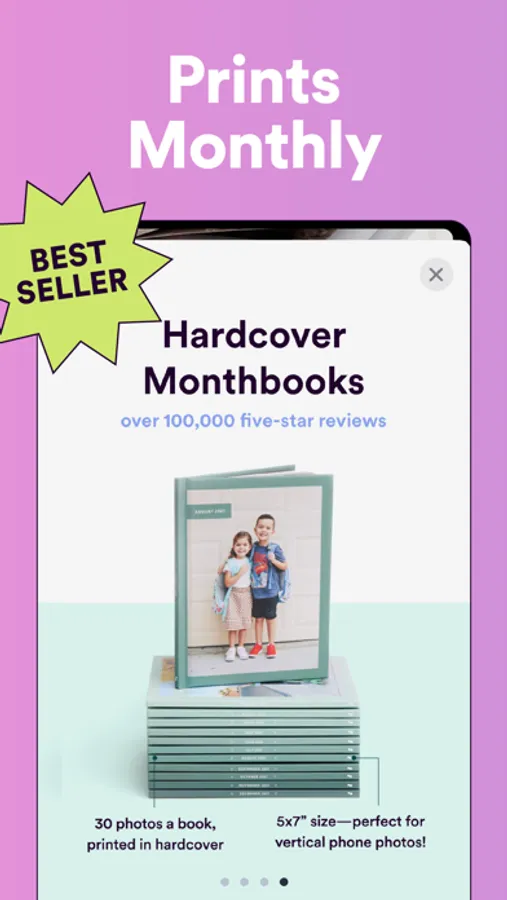 Our bestselling 5x7” Monthbooks are designed to show off the everyday photos you take on your phone. Start a Monthbooks subscription to get a new 30-page photo book every month. Add photos right from your phone camera roll in the Chatbooks app, edit, and send to print in just a few taps. Cancel anytime and always get free shipping on any Chatbooks photo book subscription.