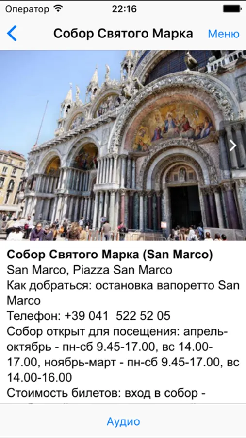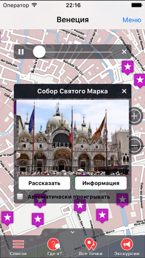 ● АУДИОГИД ПО ВЕНЕЦИИ. Рассказы аудиогида озвучены профессиональным диктором. Слушайте рассказы, не отвлекаясь от осмотра достопримечательностей и не теряя время. Не стоит лишний раз портить зрение, читая на ходу текст на небольшом экране.