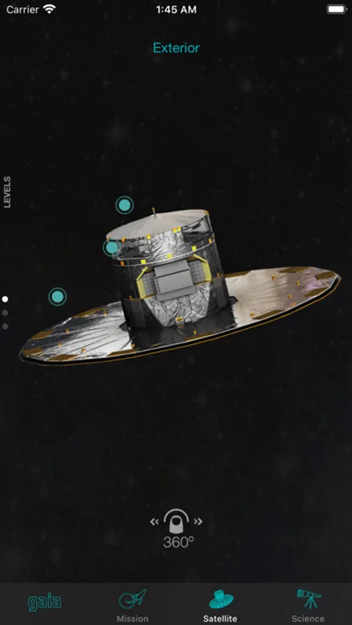 • Explore the satellite in amazing 3D, locate all high-tech components and understand its purpose and operation.