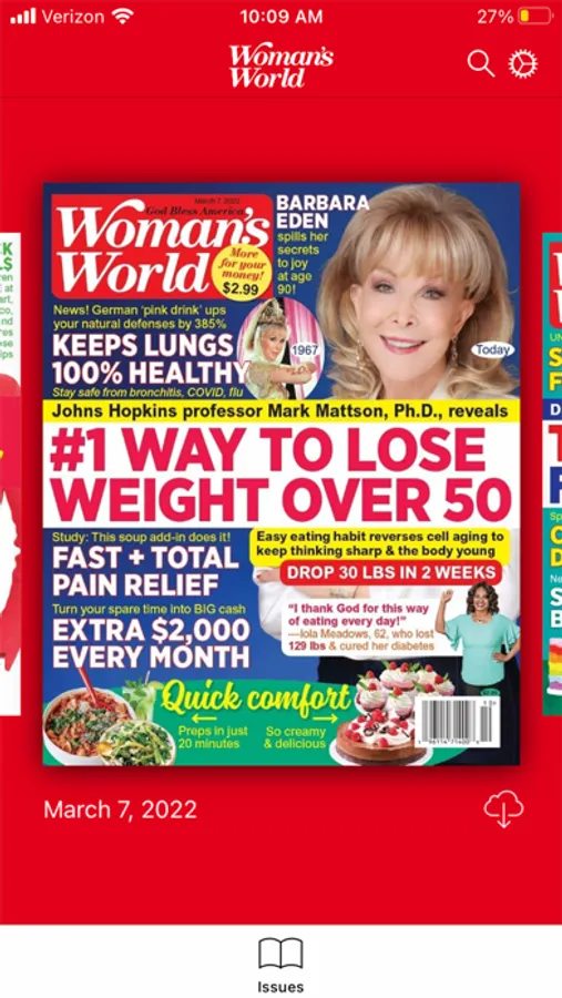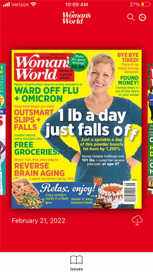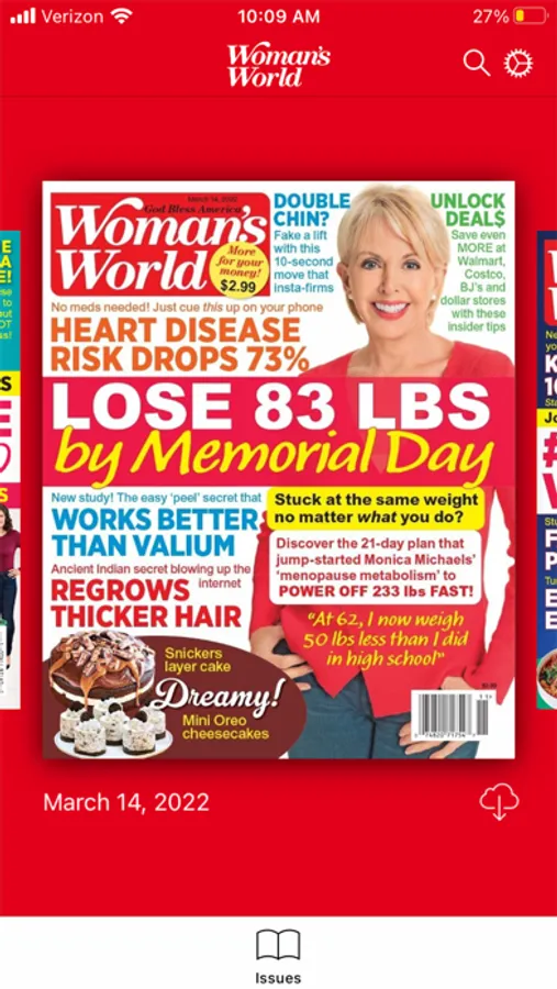 Want to be thinner, happier, healthier and less stressed? Welcome to Woman's World! Every page of this top-selling magazine is packed with great ideas for making your week easier and more fun! You'll find the latest weight-loss breakthroughs, easy money-saving tricks, mouthwatering recipes, inspiring real-life stories, family fun, and expert advice to help you live longer and look and feel your best!
