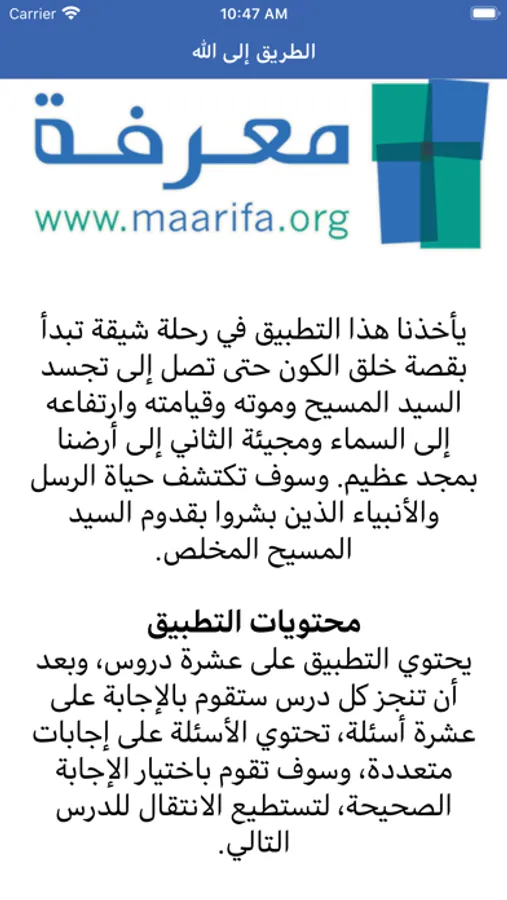 يحتوي البرنامجُ على عشرةِ دروسٍ، وبعدَ أن تُنجِزَ كلَّ درسٍ ستقومُ بالإجابةِ عن عشرةِ أسئلةٍ سهلة. تحتوي الأسئلةُ على أجوبةٍ مُتعدّدة، قم باختيارِ إجابةٍ واحدةٍ من بينها حتى تجدَ الإجابةَ الصّحيحة ...