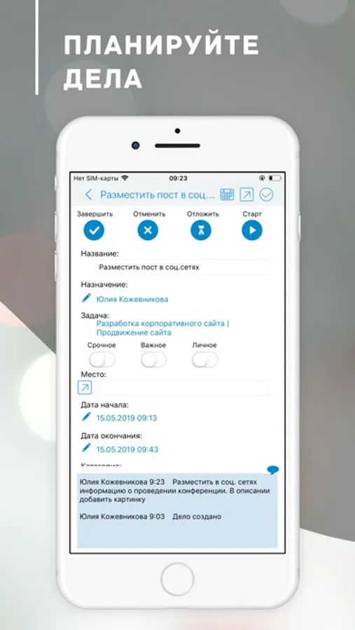 – создание проектов и задач, назначение ответственных, прикрепление файлов к задачам;