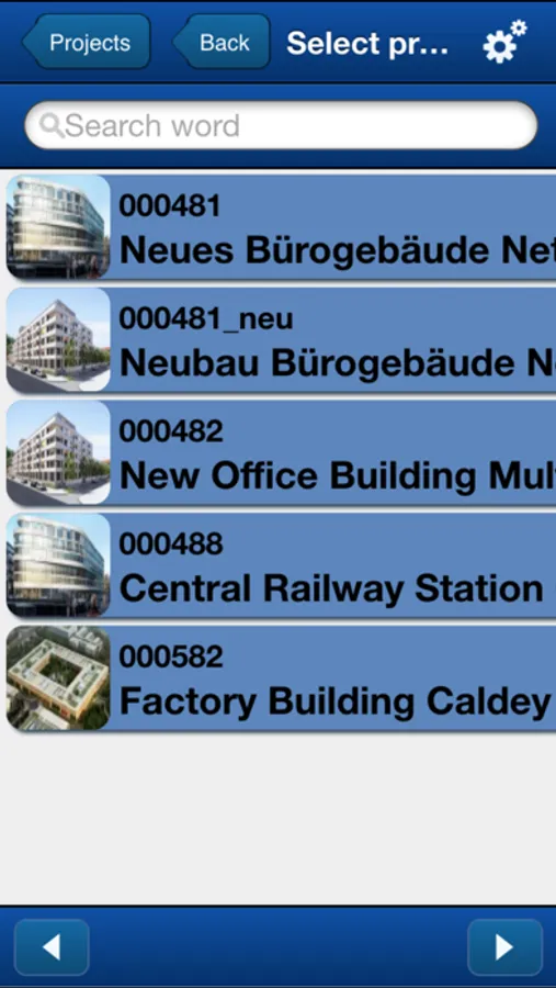 - Auswahl aus den auf dem Server abgelegten Projekten