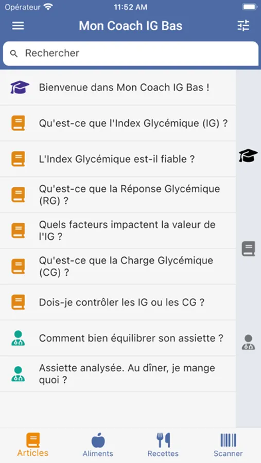 Bien que cette application ne soit pas directement destinée aux diabétiques, elle pourra aider à bien choisir ses aliments en s'appuyant sur les IG et les CG.
