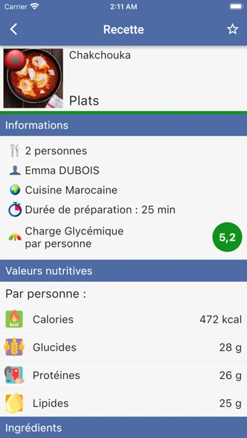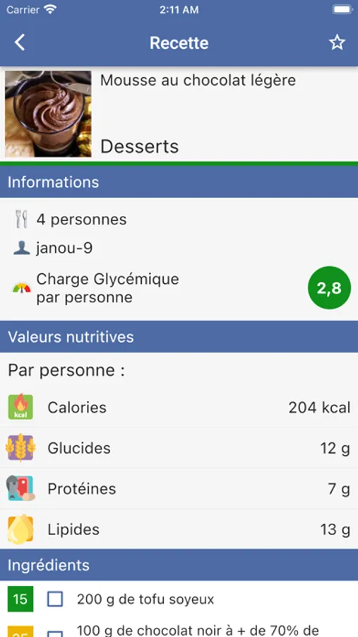 La fiche de l'aliment contient, quant à elle, bon nombres d'informations (selon l'aliment) :