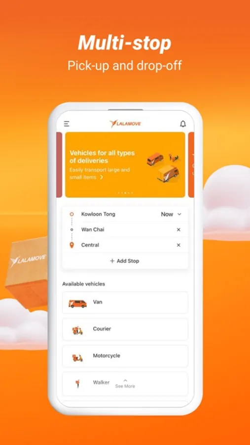 Whether you need a rush delivery in the middle of the night or a scheduled delivery during regular business hours, Lalamove has got you covered. On-demand, same-day, next-day or scheduled deliveries? Multi-stop pick-up and drop-off points? All at your fingertips.