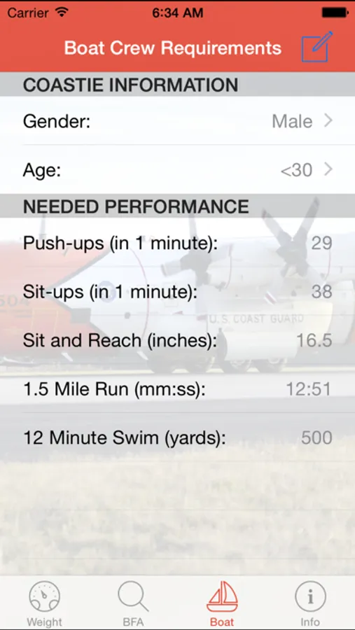 Determines compliance with US Coast Guard Body Fat and Fitness Standards.
