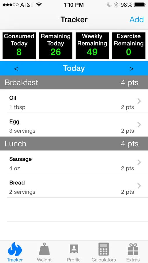 App memorizes your created food items, so no need to create it every time- just select it from My Foods to log every time you consume it