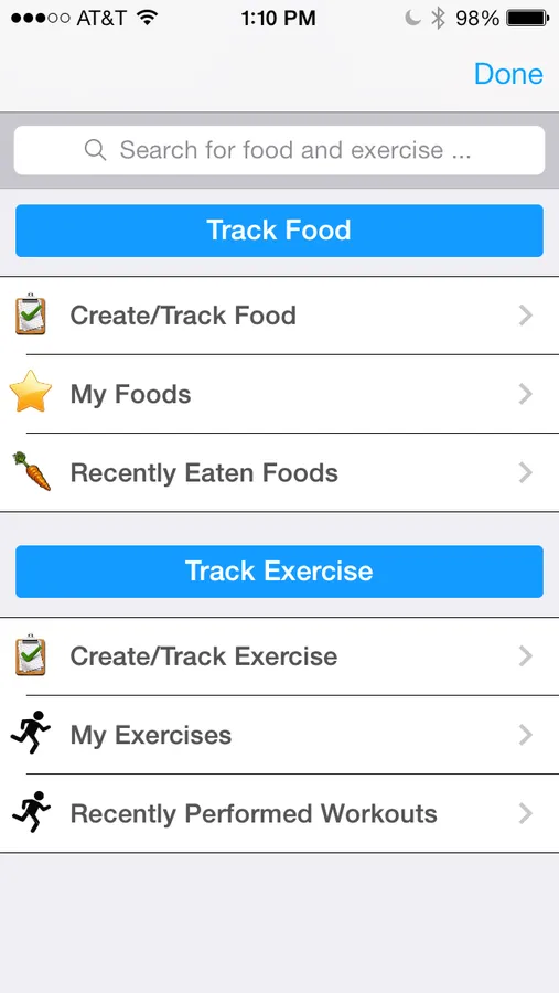 - Log your food items in a diary (your logged items will create your own database, no existing database is included ), track it and see how much more you can consume for the rest of the day and week