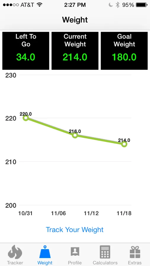 - See how your weight changed using weight tracker tab. The weight tab includes a graph : anytime you log your weight, app tracks it for you
