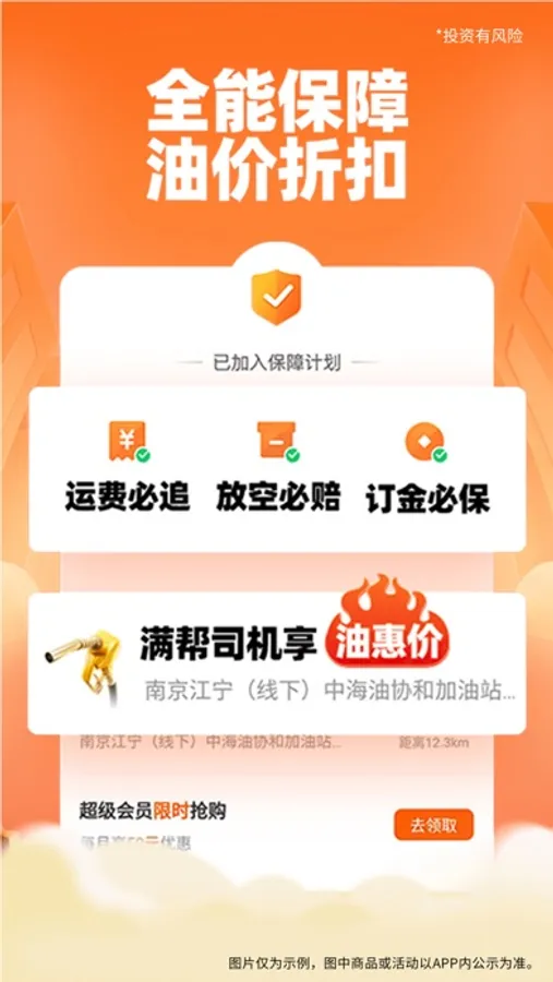 运满满可提供放空险保障,降低回头车、回程车、返程车的空返率,改善整体物流配货找车效率。