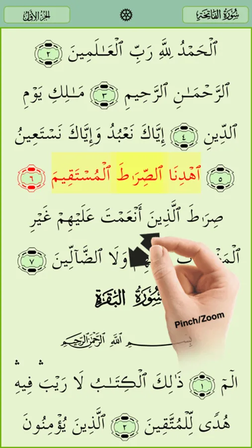 ● Option to display any translation and Tafsir along with full Arabic text in hi-resolution, retina graphics in both portrait and landscape viewing. Option to display side by side Malayalam translation (juz 1 only for free version). Supports pinch/zoom feature for changing font size.