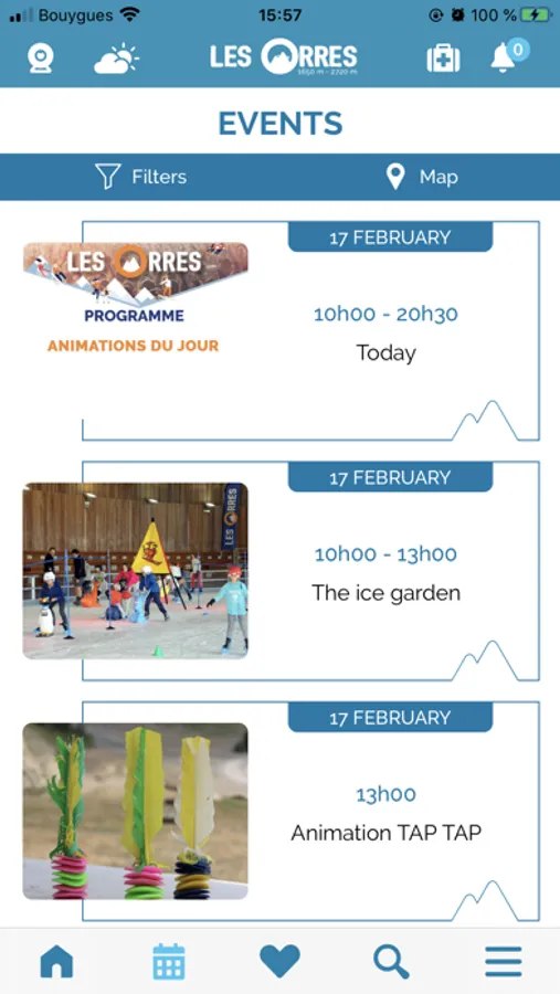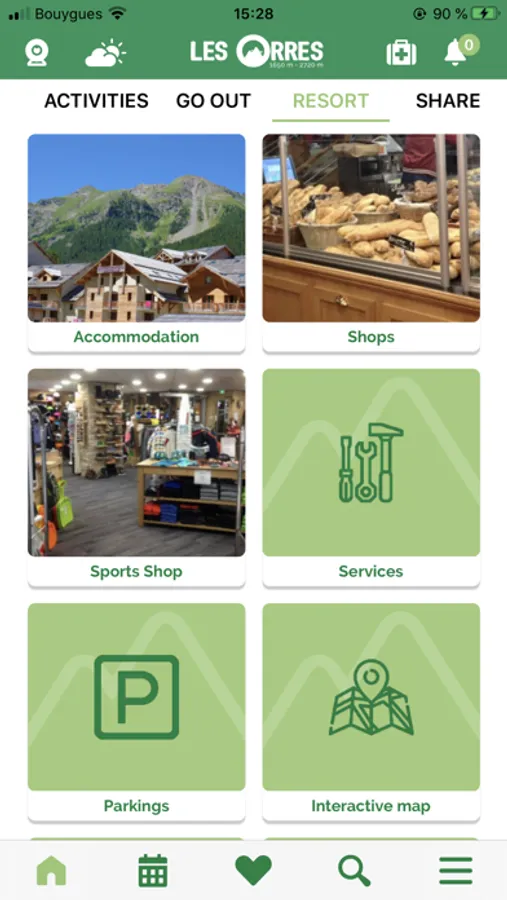 Then, to make getting around the resort easier, you will find the shuttle timetable, an interactive map of the commune, a map of the slopes, geolocalised car parks and of course all the services, activities, shops and events that you won't want to miss!