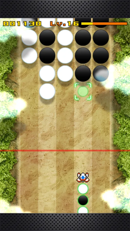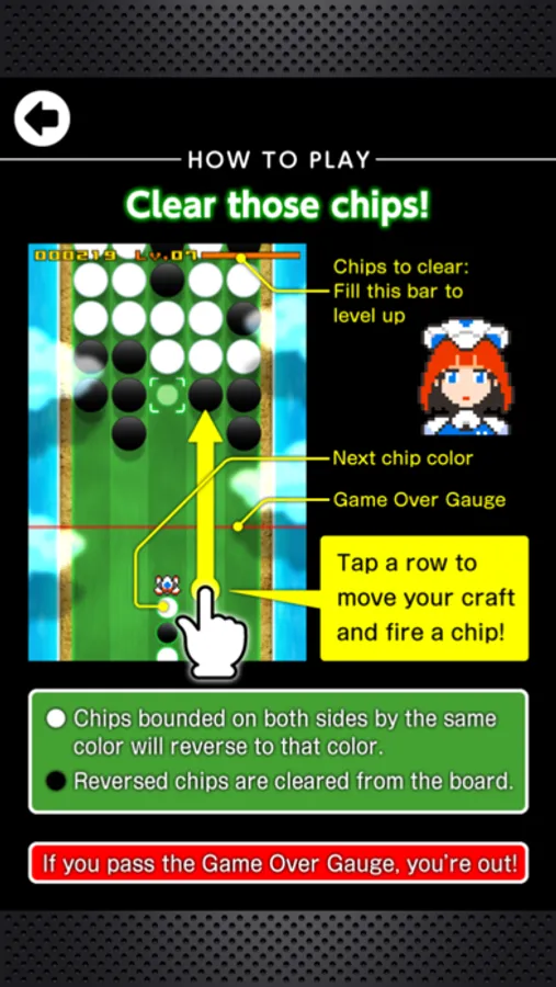 ・Tap a row to move your craft and fire a chip