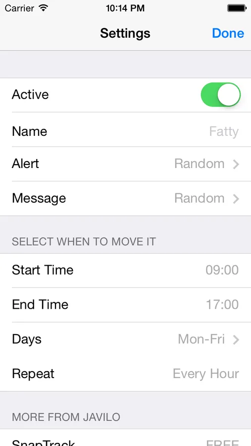 MiF is a clever app designed to remind you to Move It and help you get some much needed regular exercise when you'd normally be sitting in one place for prolonged periods like at work. Just let MiF know how often, and on which days, you'd like to be reminded to get up and exercise, and he'll let you know when it's time to get up and move in his own inimitable style!