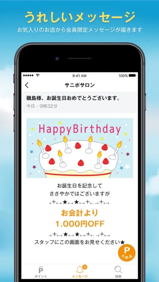 "お気に入りのお店"からお得で楽しいメッセージが届きます。