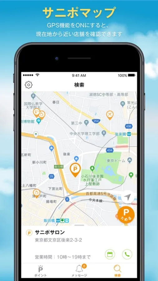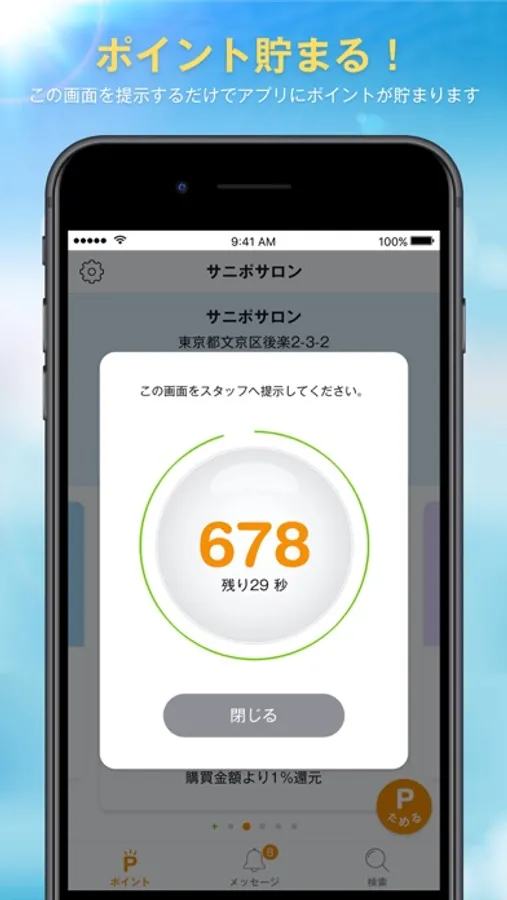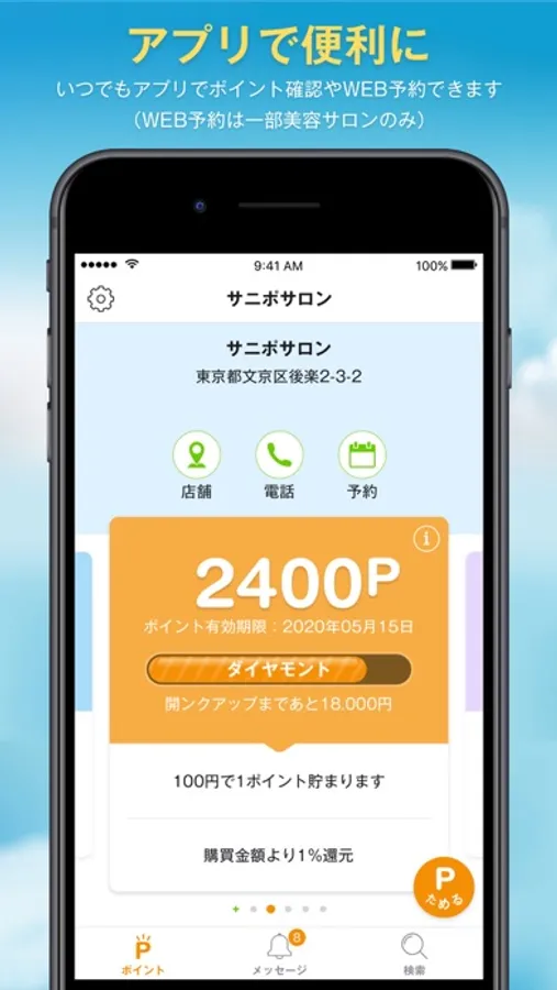 ポイント数をいつでも"サニポ"アプリで確認できます。
