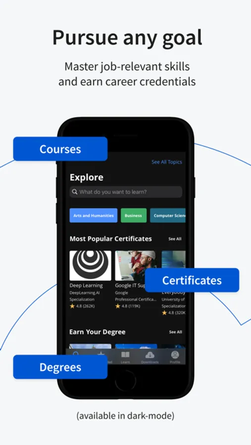 Start, switch, or advance your career with more than 8,000 courses, hands-on projects, certificate programs, and degrees. Coursera partners with world-class companies and universities, so that you can learn with experts and build the most job-relevant, in-demand skills.