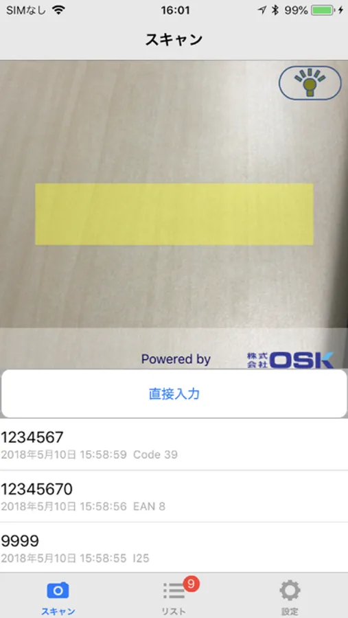 画面のカメラエリアをタップすることで読取を実施する機能です。