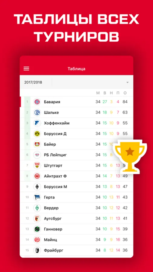 • Освещение всего сезона, включая немецкий футбол - Бундеслига и Кубок Германии, а также еврокубки – Лигу Чемпионов (ЛЧ) и Лигу Европы (ЛЕ).