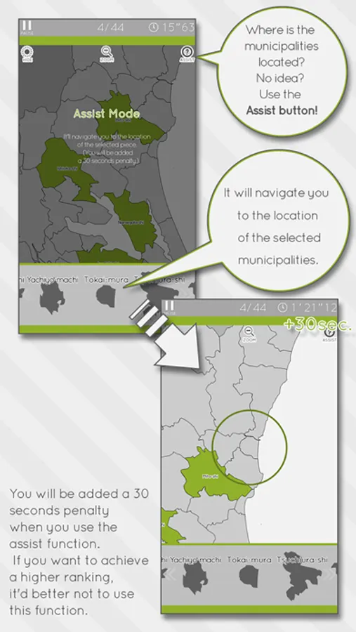 However you will be added a 30 seconds penalty when you use the [Assist] function. If you want to achieve a higher ranking, it'd better not to use this function.