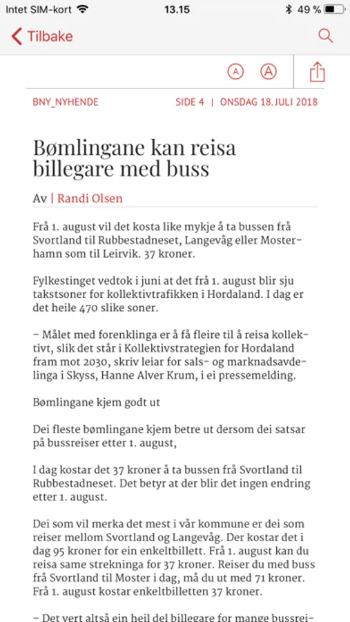 Med Bømlo-nytt-applikasjonen kan du laste ned og kjøpa papiravisa i eit format som er tilpassa din iPhone, iPad eller iPod touch.