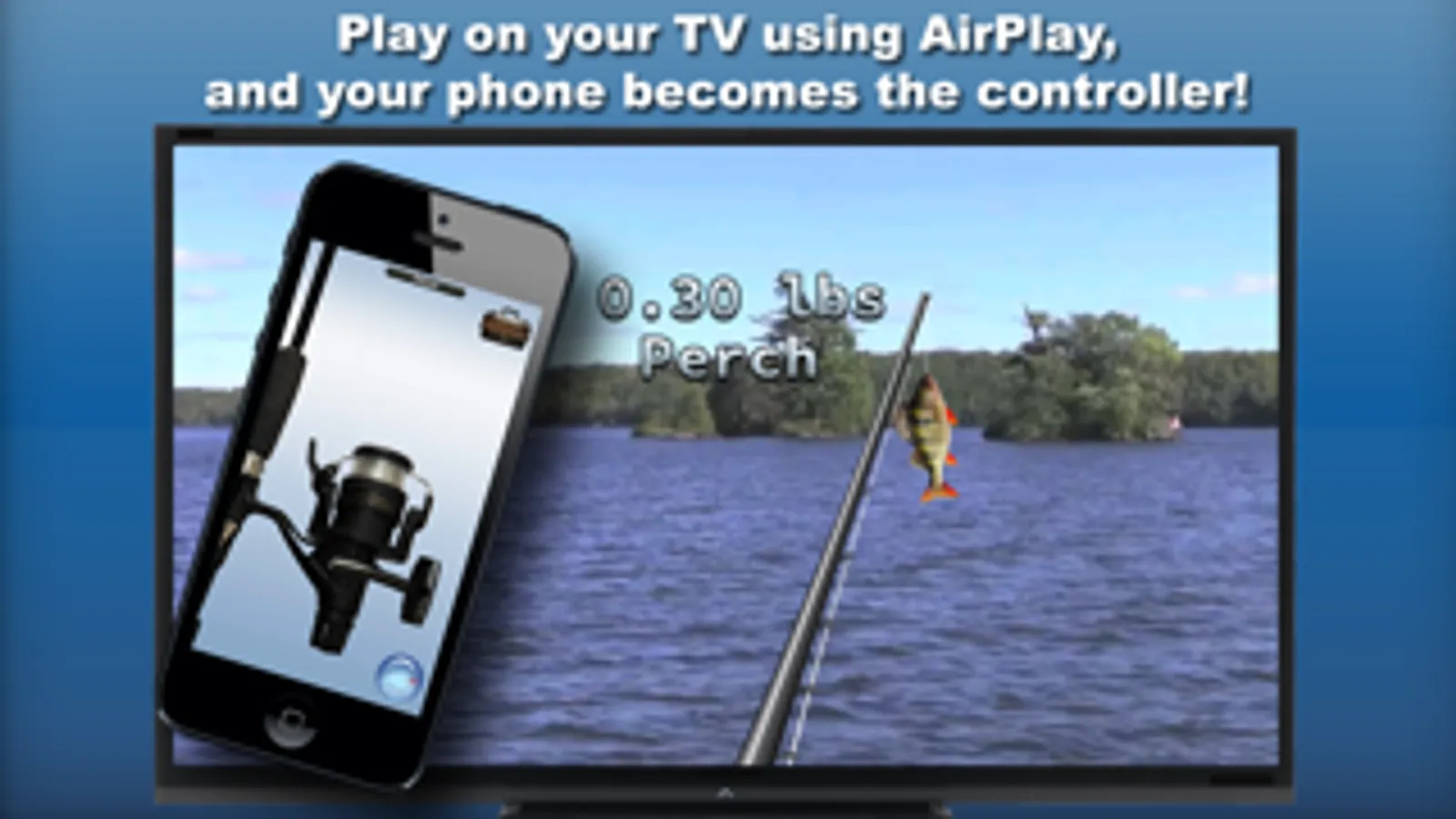 Now you can fish on your TV from the comfort of your living room with an Apple TV. Simply turn on screen mirroring and start the game. During gameplay your phone turns into a second screen with just the controls visible.
