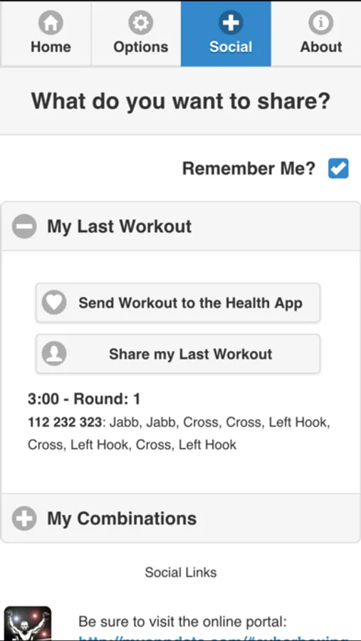 This application integrates with the Health App (HealthKit) to store and track caloric information corresponding to your workouts. Please see the Social Tab for more information. Use the "Send to Apple HealtKit" button to transmit your information to Apple Health. Use the "Share" buttons to upload your workout or combinations and they can be sent to various social media outlets.