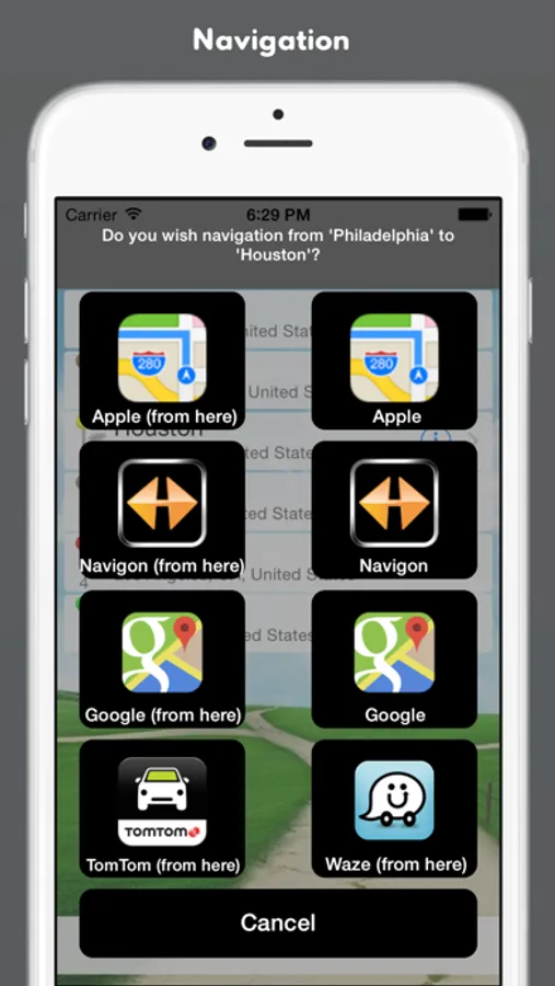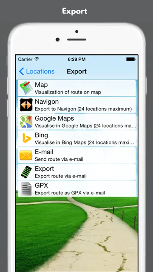 - Export to navigation app Waze