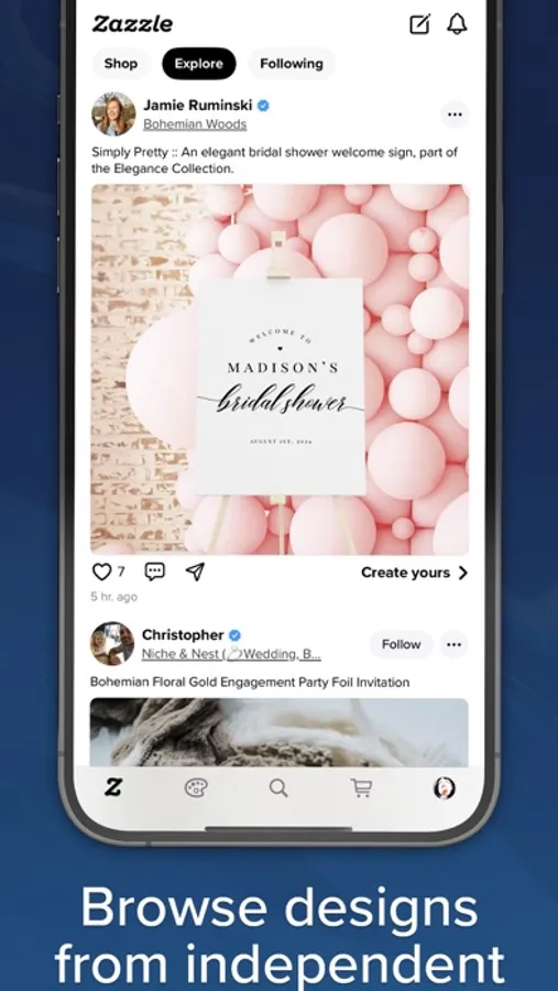 Whether you want floral invitations or monogrammed mason jars, decor for an enchanted garden ceremony or a rustic backyard celebration; creativity and passion is in our DNA which means our community is continuously creating new designs for all types of weddings. From start to finish, we’ve got an unmatched breadth of products for your before, day-of, and post-wedding needs – all at affordable prices - all customizable.