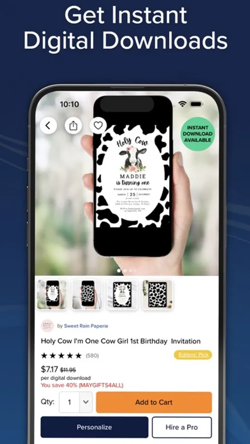 Whether you’re short on time to send invites, or choosing an eco-friendly option for save the dates, Instant Downloads offer a convenient way to share your moment in minutes. We have it covered, from birthdays to baby showers, surprise parties… even downloadable prints and art for your home.