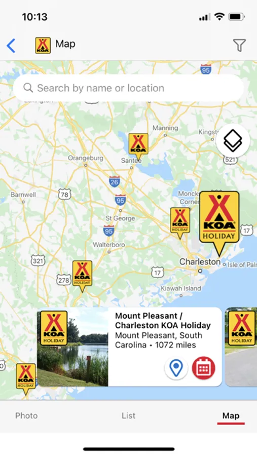• Find KOA campgrounds: With our easy-to-use search function and filtering capabilities, you can find the perfect KOA campground for your next outdoor experience, whether you're looking for RV parks, tent camping, cabin camping, or glamping. You can search by city, state, campground name, or even nearby attractions.