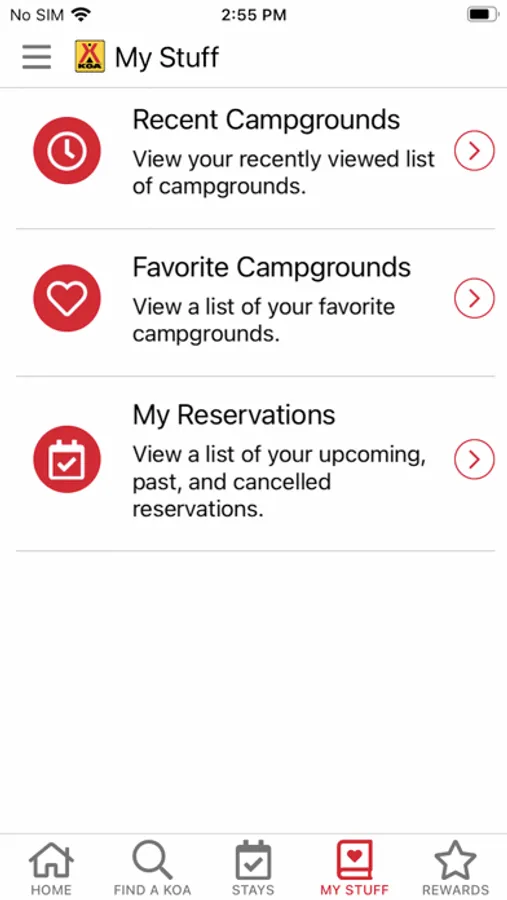 • Earn rewards: If you're a KOA Rewards camper, you can track your points, rewards, and more in the app.