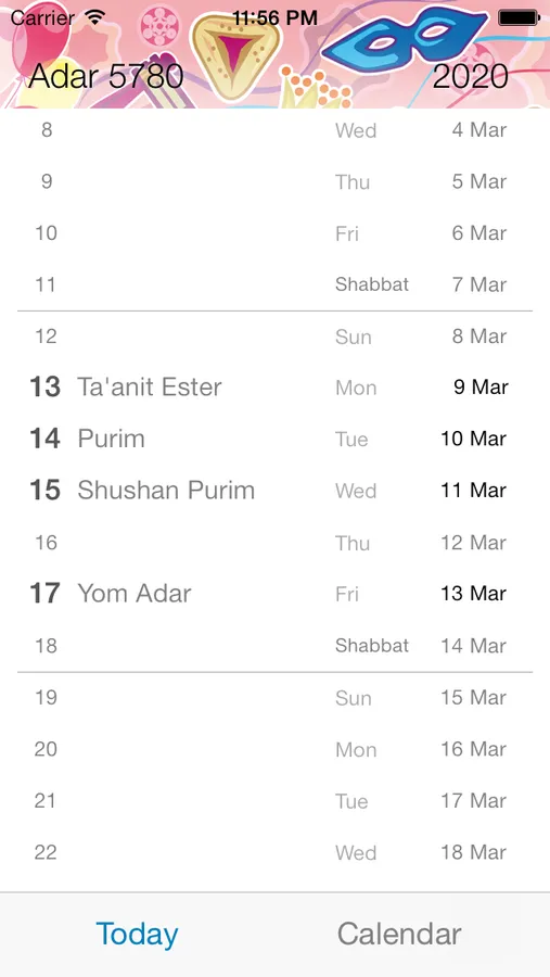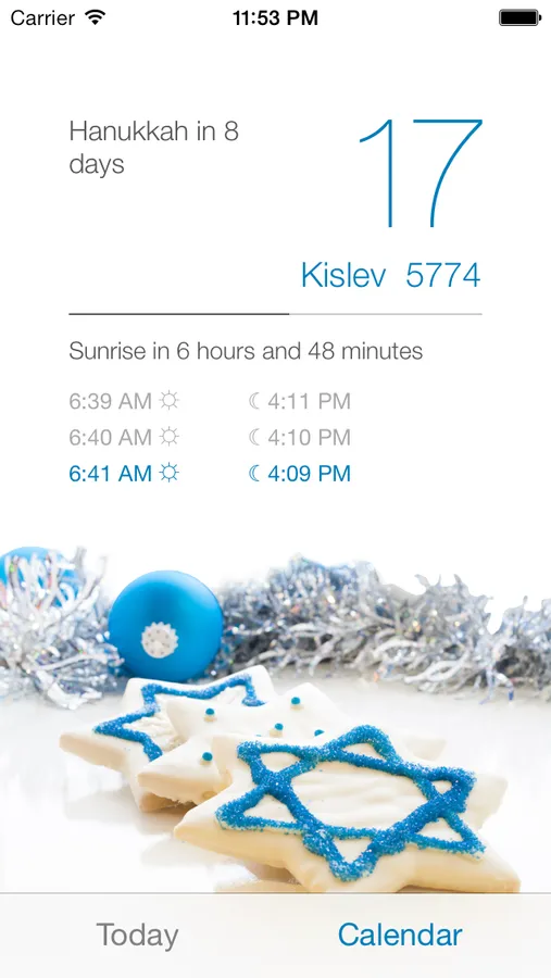 Lunary is focused on beautifully showing correct Hebrew date at any moment in time, wherever you are. It continuously calculates and displays number of days left until the next holiday throughout the year and allows you to quickly find and convert corresponding dates ninety years in the past and ninety years in the future.