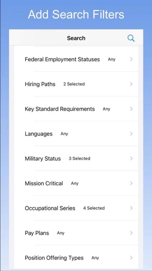 - Add multiple search filters, for example Mission Critical, Military Status, or Hiring Path.