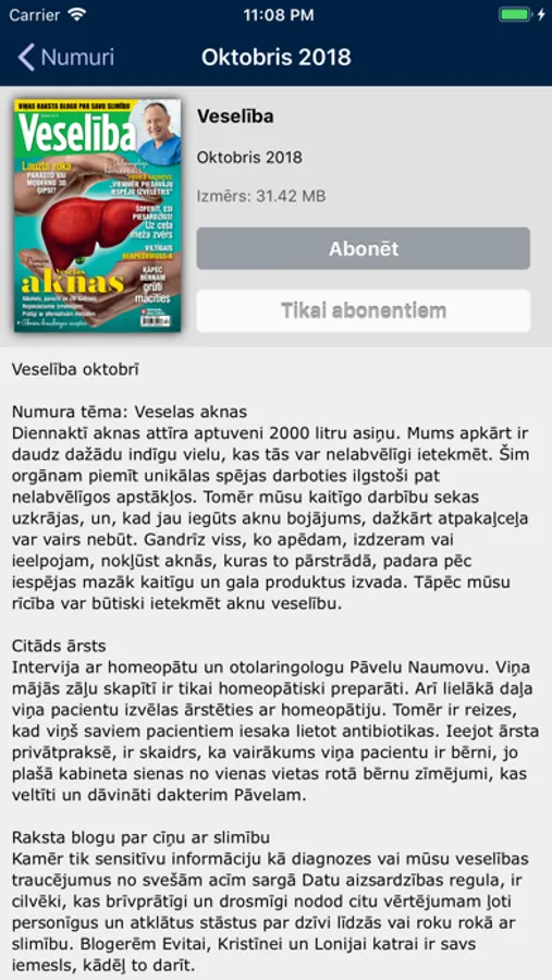Žurnāla "Veselība" abonēšanas cenas: