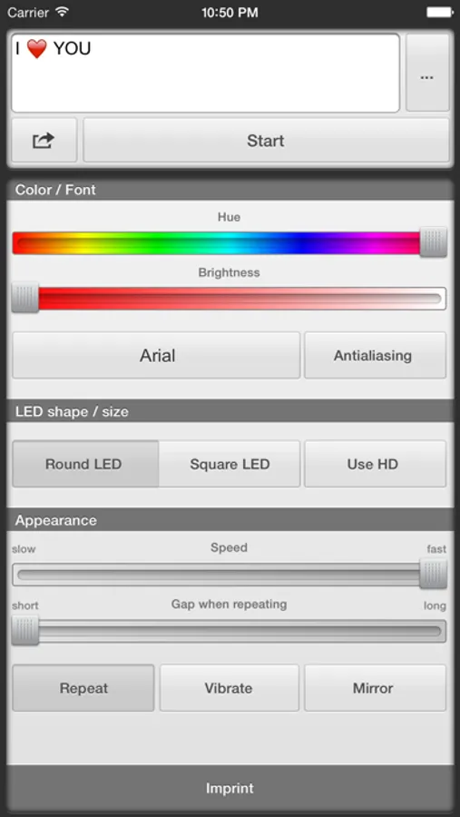 LEDme is the easy to use LED Banner App to visualize messages in LED Newsticker optic.