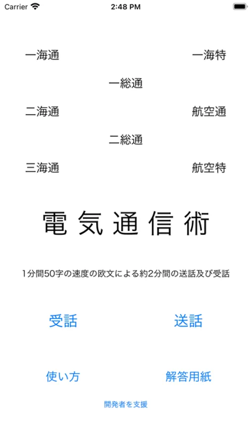 このアプリは無線試験に出題される電気通信術の対策用アプリです。