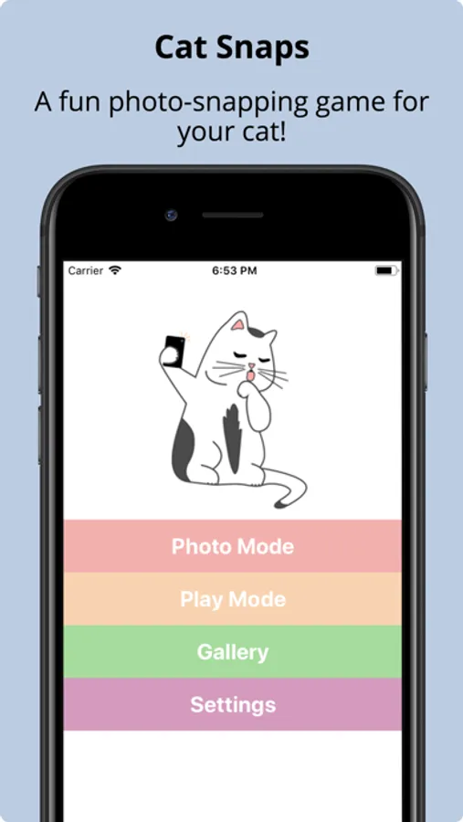 Cat Snaps puts taking photos of your cat into your cats paws. Let your cat play a simple game and when your feline taps the screen, Cat Snaps will take a fun and unique photograph of your cat.