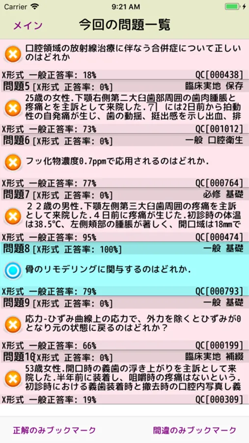 また、ネットワークにログインし接続して使用することで、一般正答率(全ユーザーにおける)を知ることができます。また、その情報をもとにして、ユーザー全体で、とくに正答率が低かった問題を選んでチャレンジすることができる「低正解率コース」も実装しています。