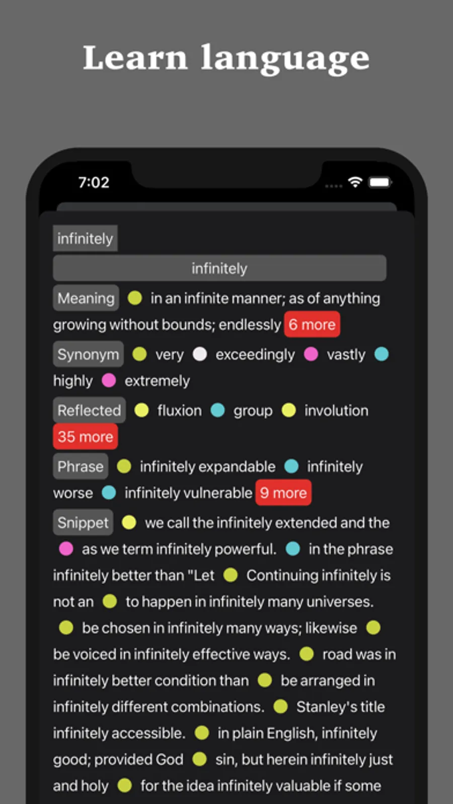 Install the Dictionary PRO and throw yourself a brainstorming party! Dictionary PRO puts examples, definitions, rhymes, antonyms, synonyms, and more at your fingertips.