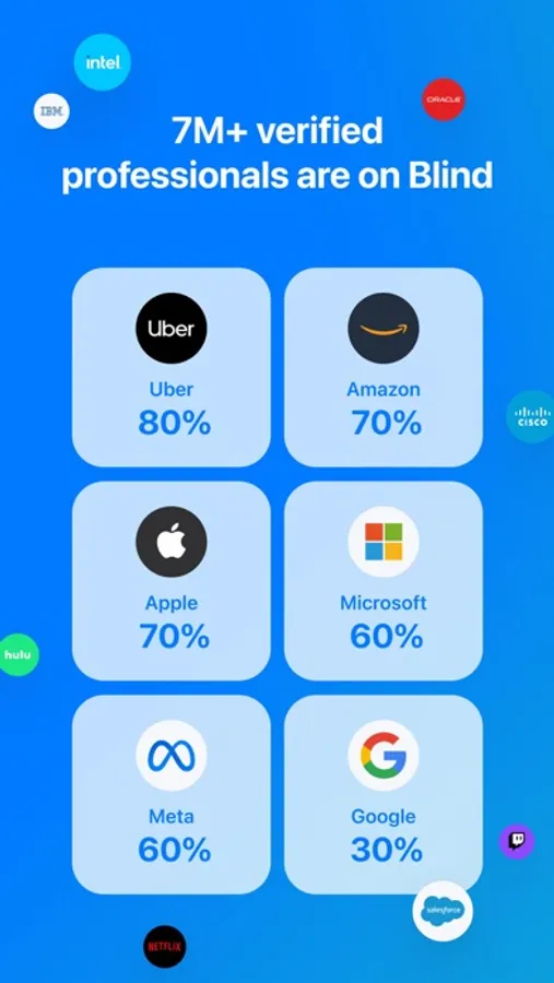 Blind has more than 9 million verified professionals at more than 300,000 companies, including: