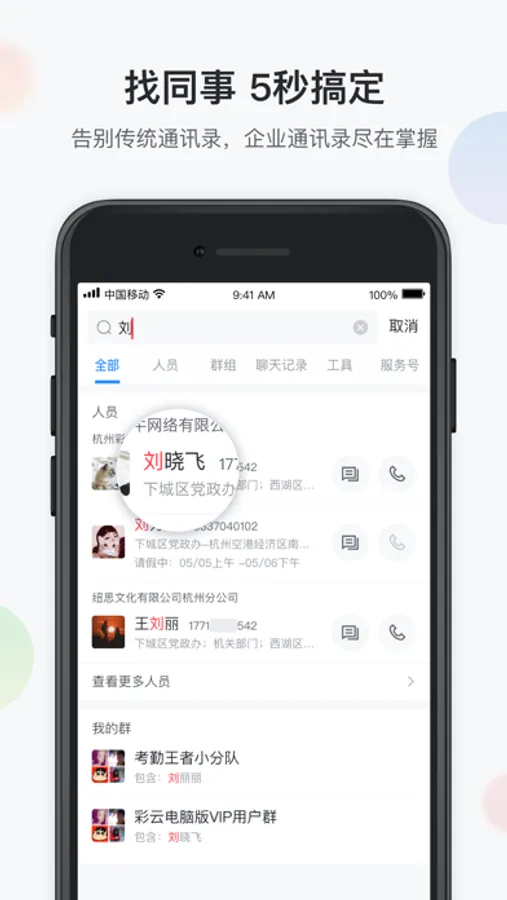 1、企业通讯录——同事号码全掌握,5秒找同事超快捷